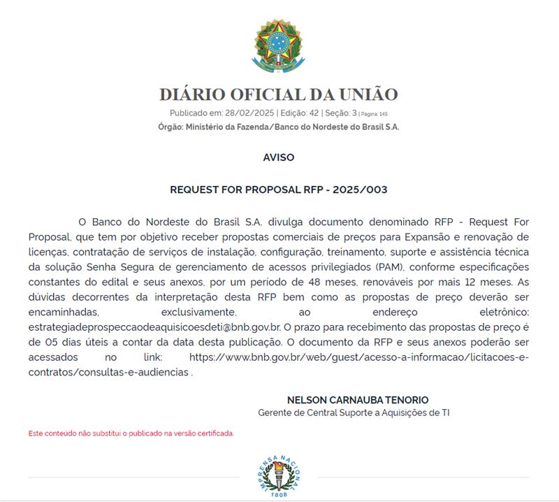 Consultas e Audiências – RFI, RFP e participação – Banco do Nordeste